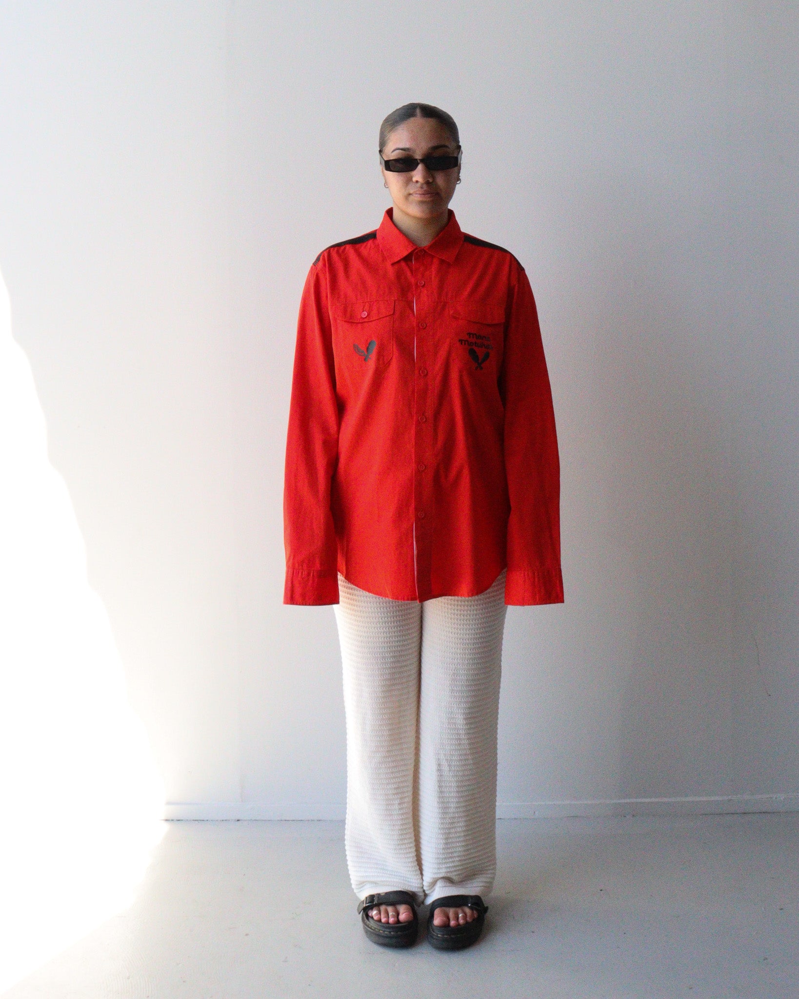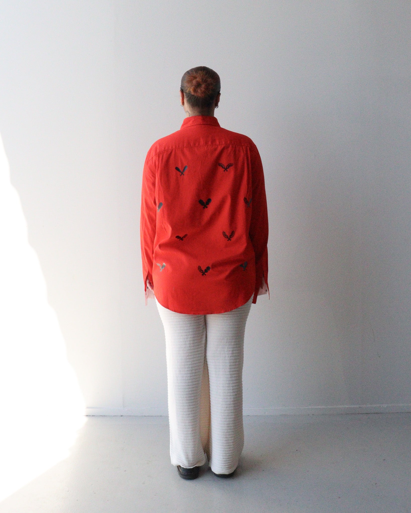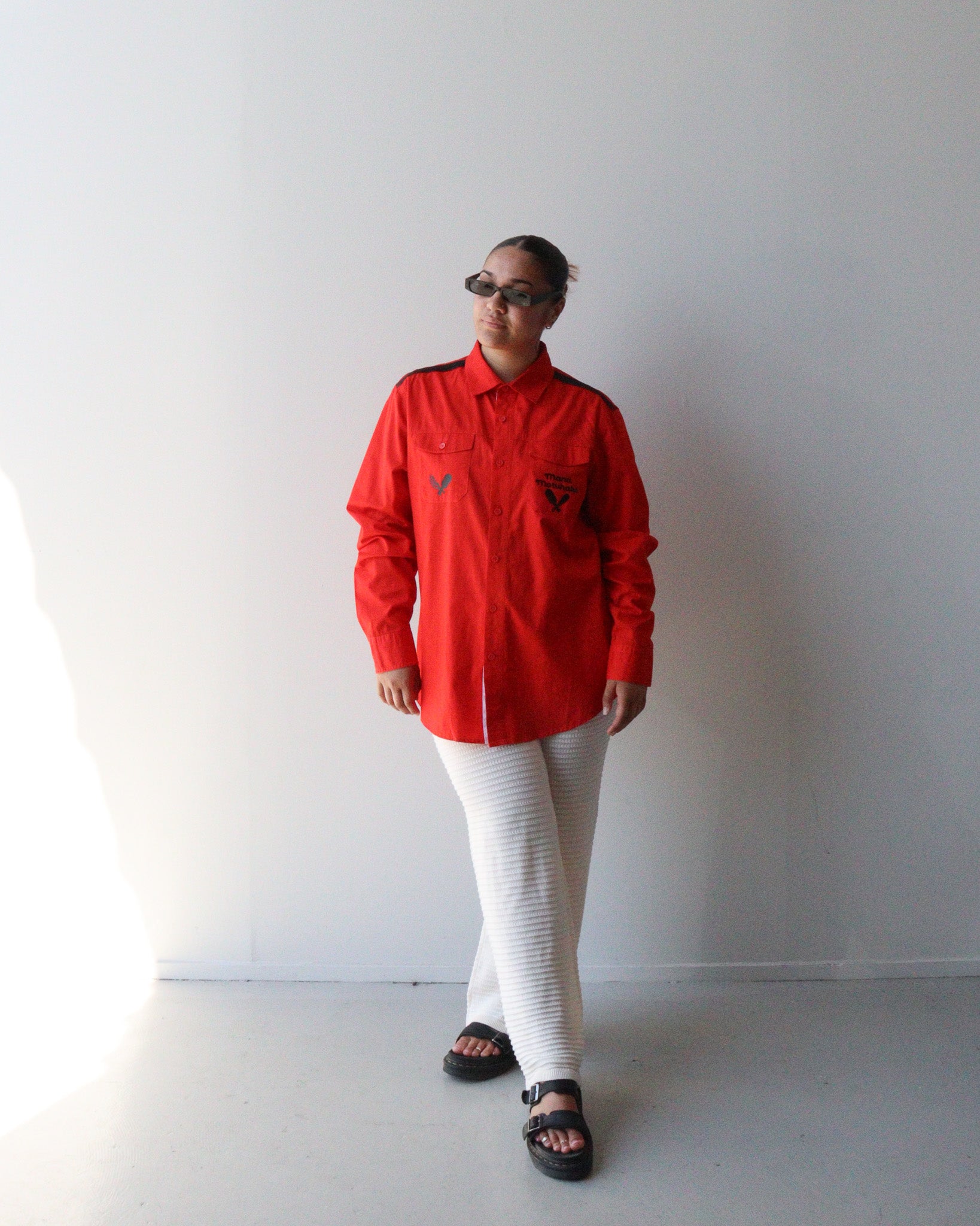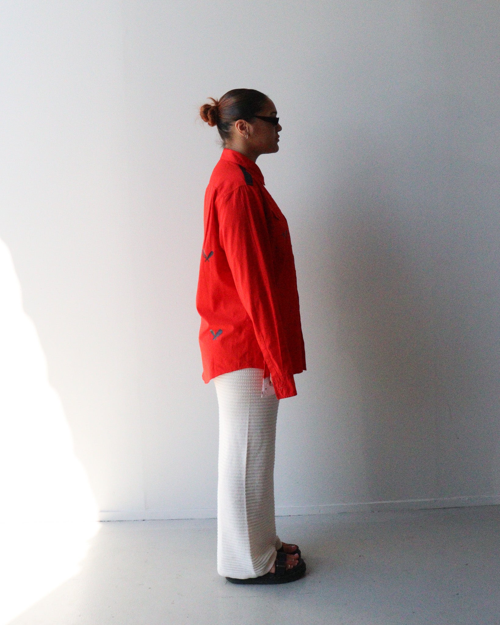 One-of-a-kind, second hand Shirt reimagined through a Māori lens and urban flair. Each piece is hand-printed and painted, telling its own indigenous narrative, no two are the same.