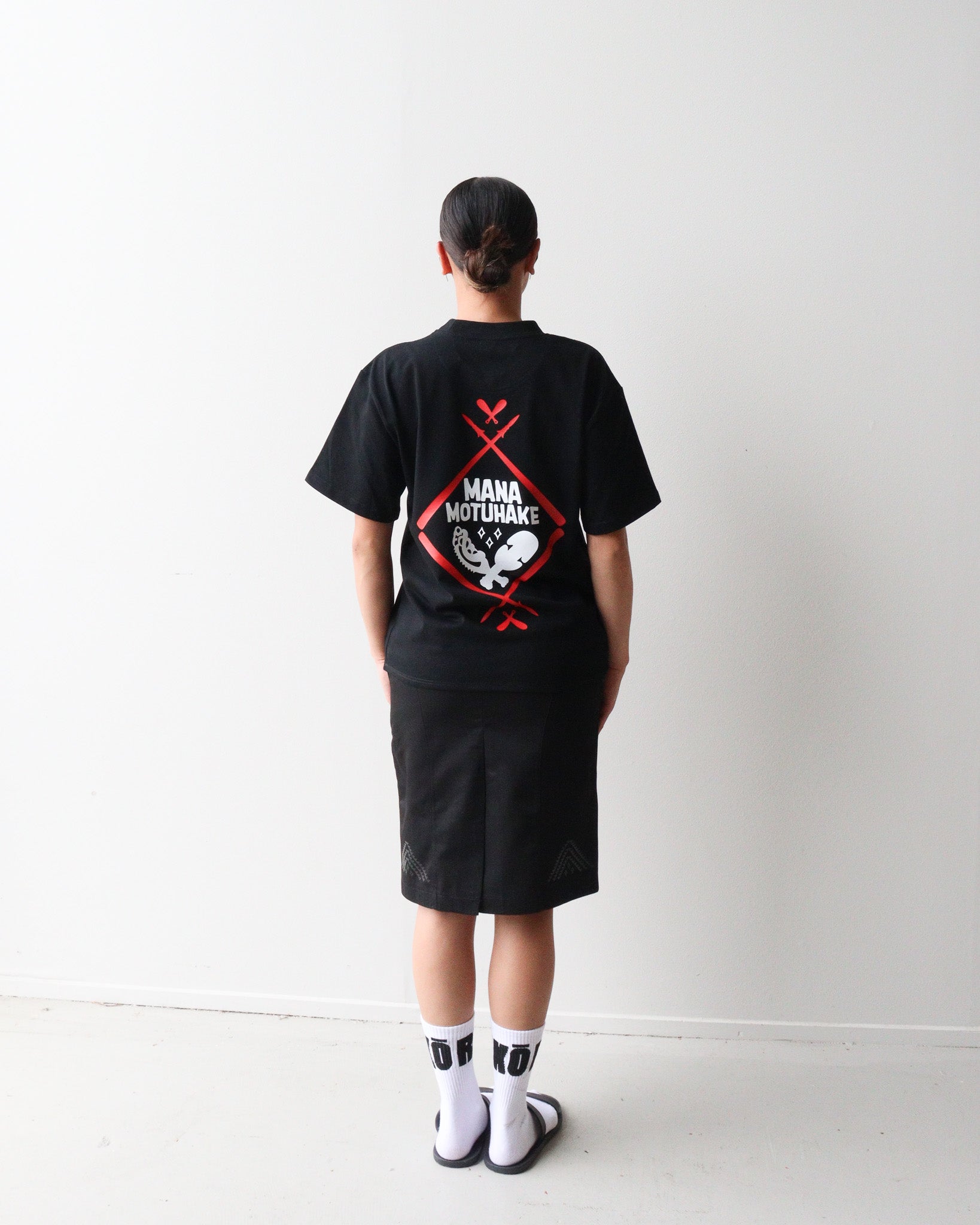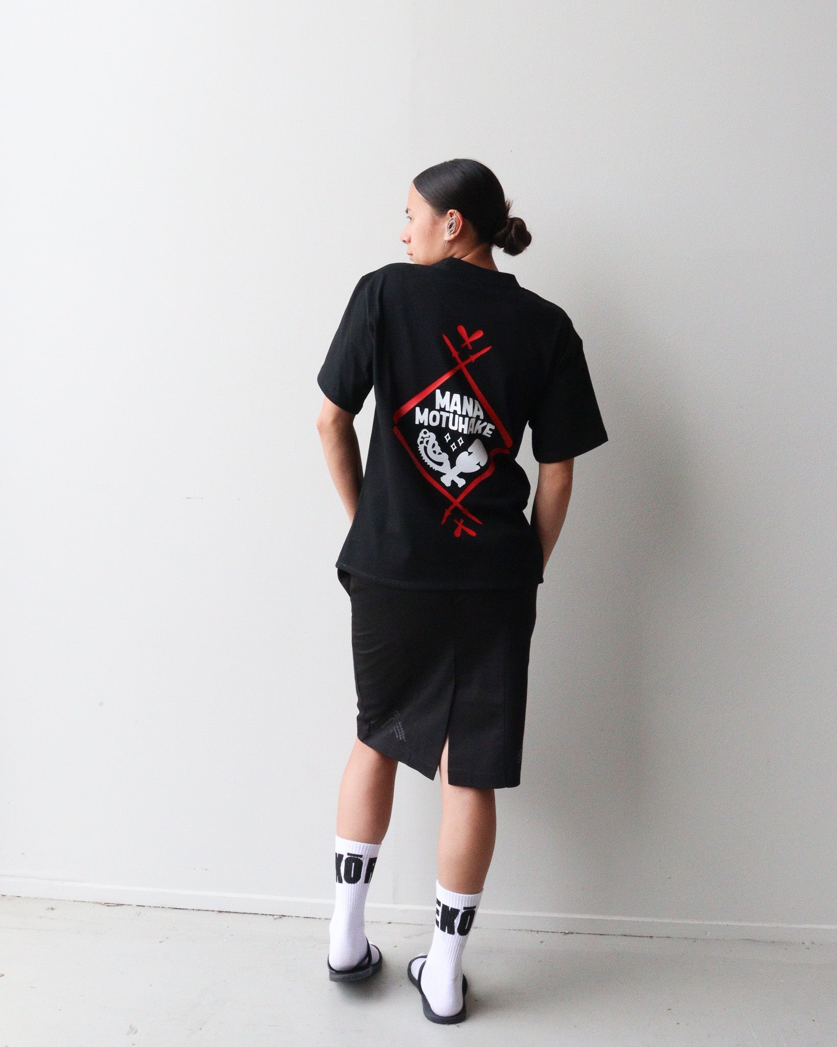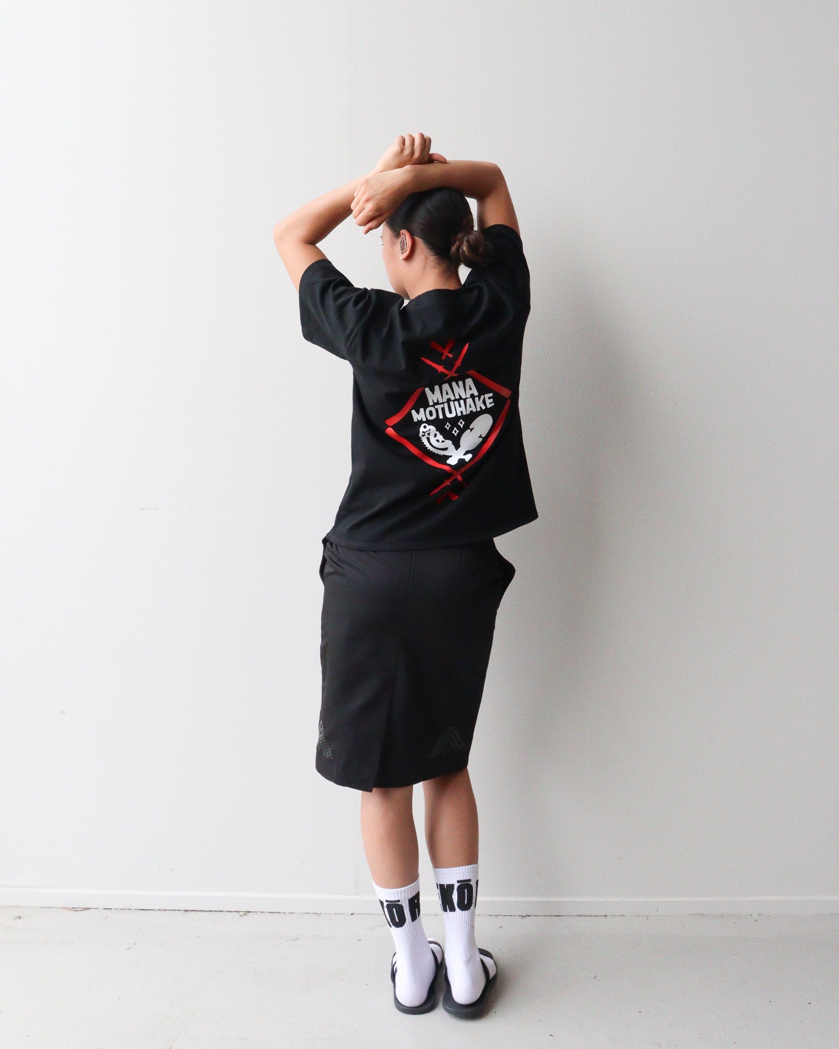 About the design: Mana motuhake, This print design represents our interpretation of mana motuhake. We have created this pattern to represent our resilience and will to fight for our mana motuhake and tino rangatiratanga. Ka whawhai tonu mātou, ake, ake, ake! We will continue to fight for as long as it takes!