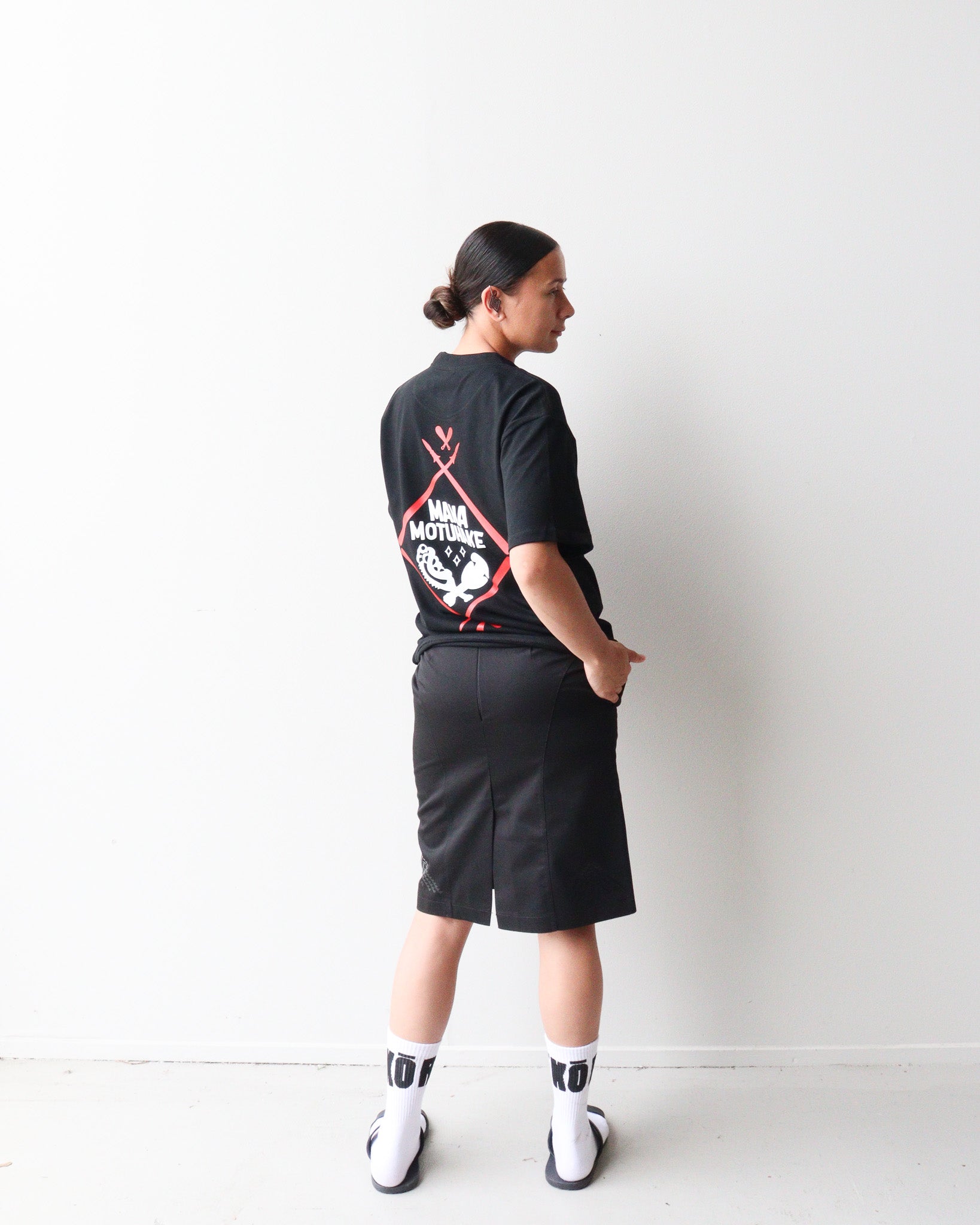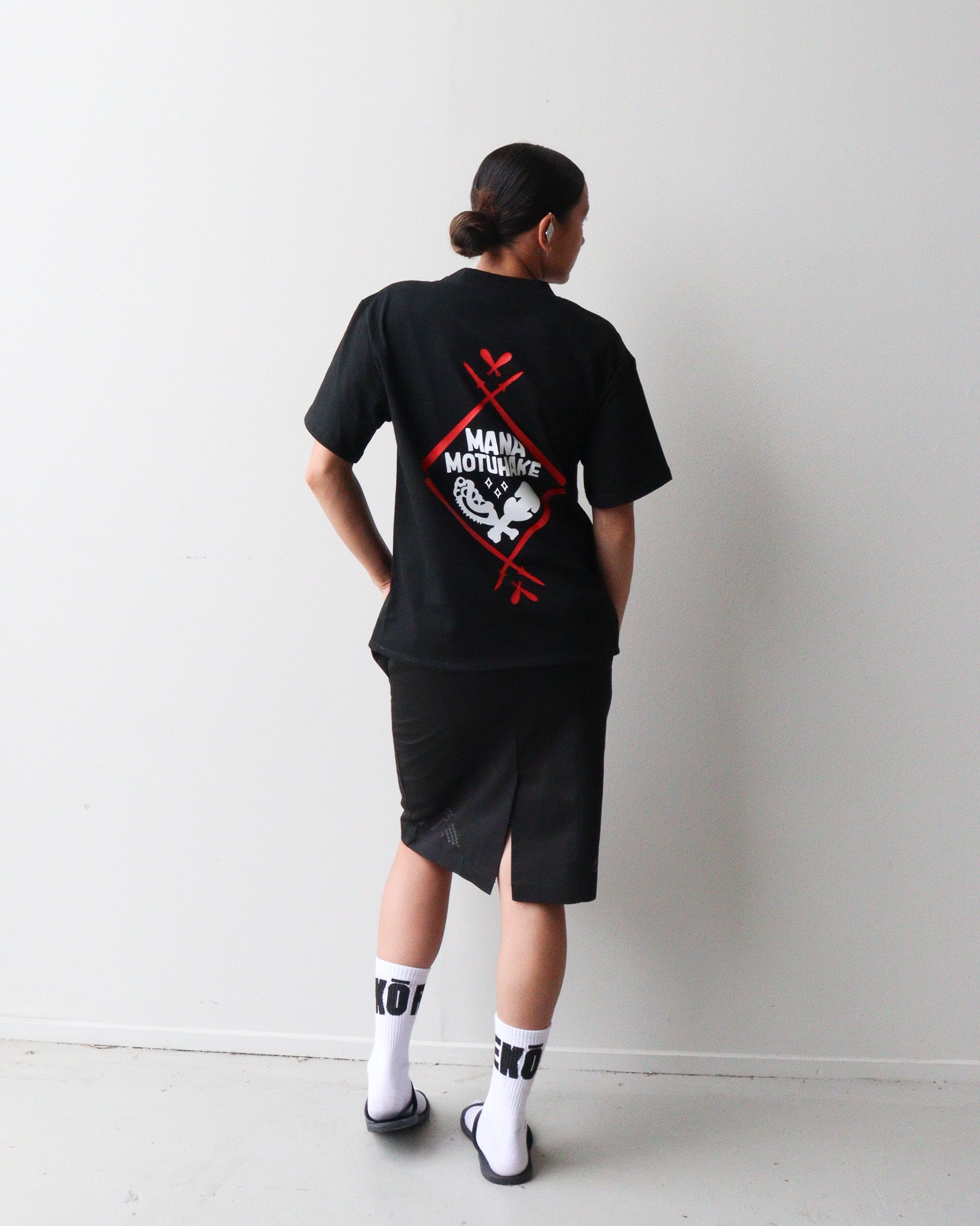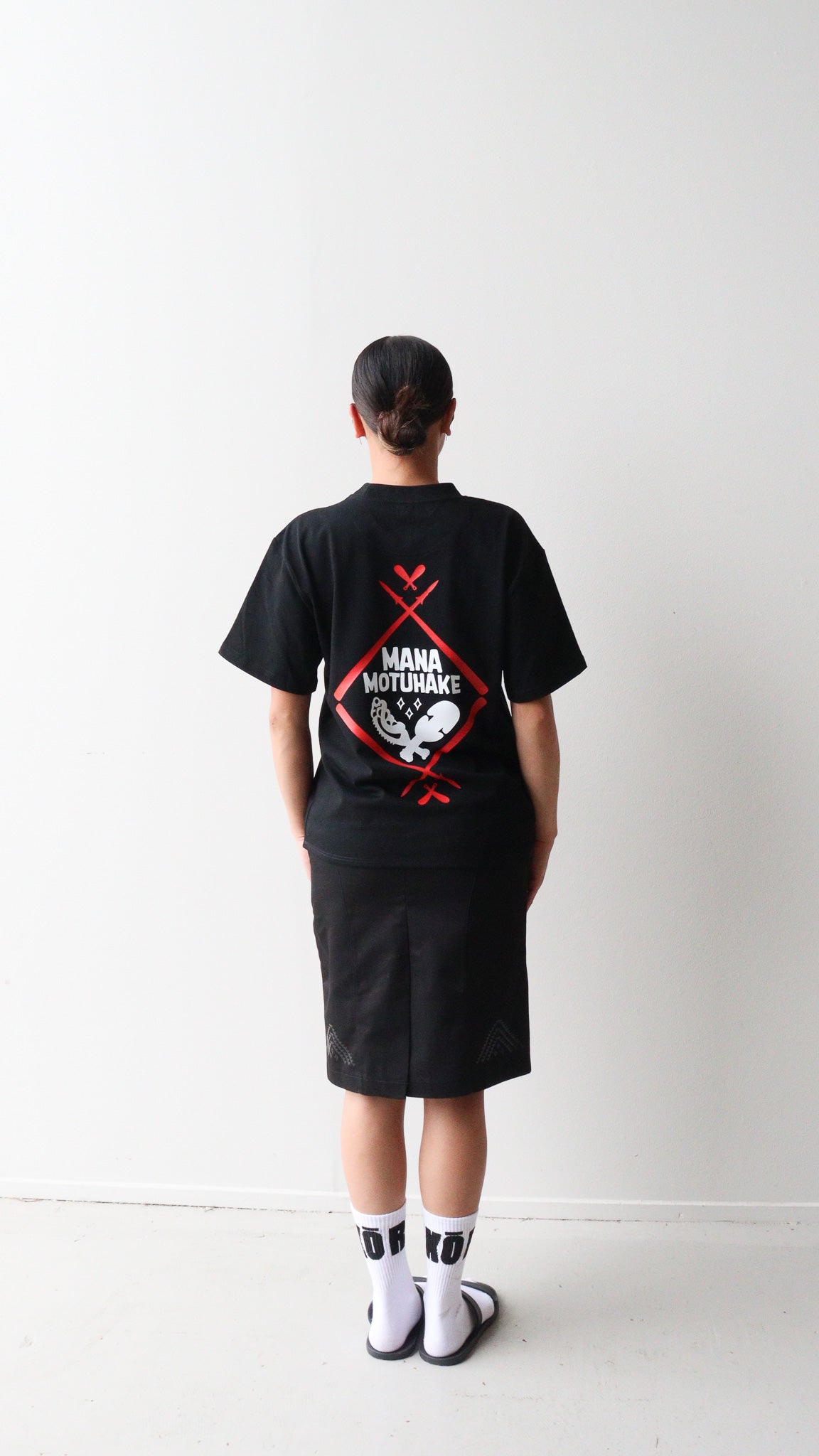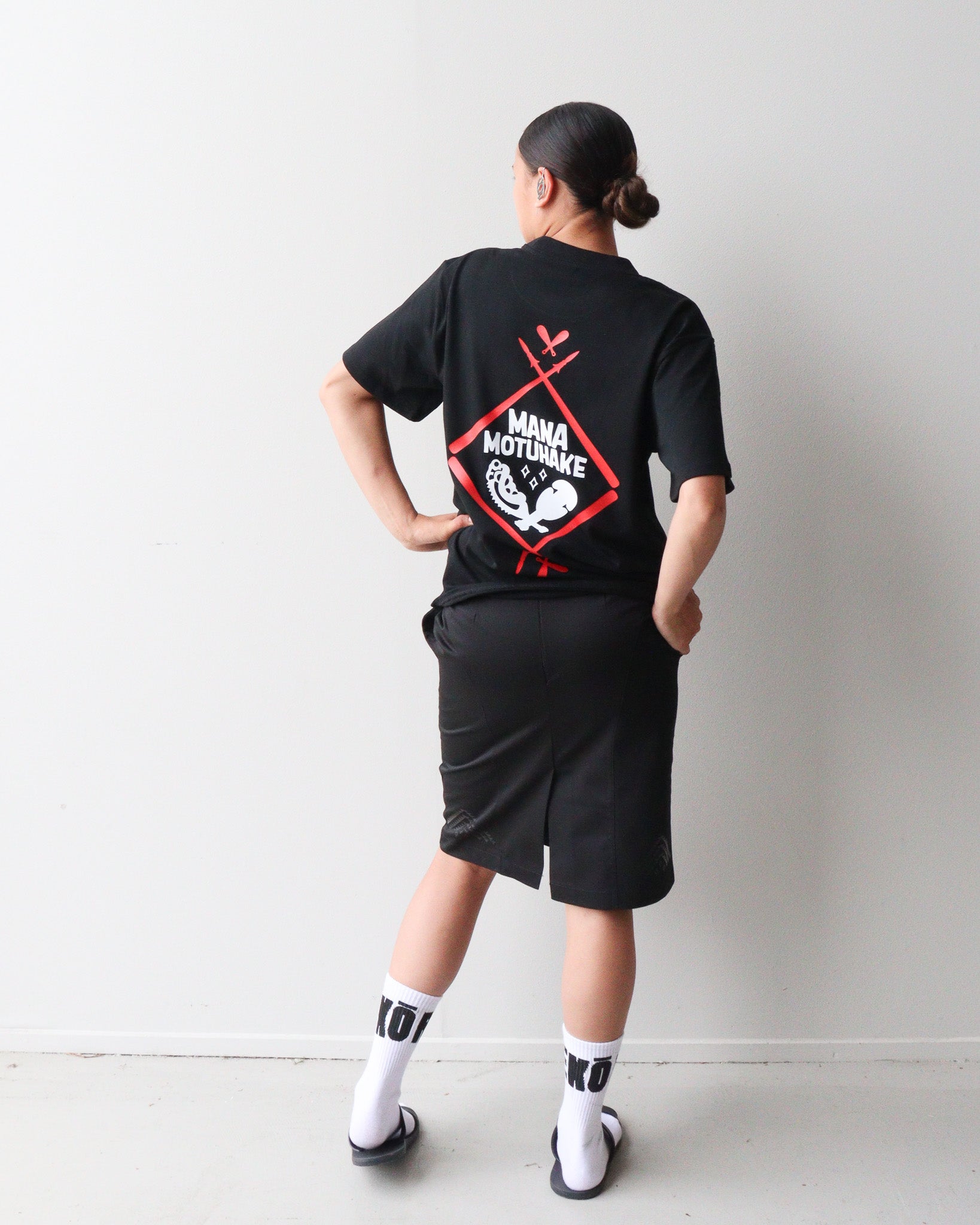 About the design: Mana motuhake, This print design represents our interpretation of mana motuhake. We have created this pattern to represent our resilience and will to fight for our mana motuhake and tino rangatiratanga. Ka whawhai tonu mātou, ake, ake, ake! We will continue to fight for as long as it takes!